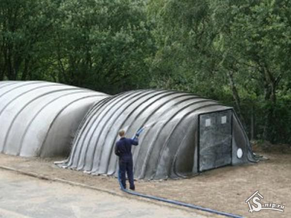 "Concrete Canvas" (или - бетонное полотно) – это гибкий материал, который представляет собой пропитанную цементом ткань, застывающую при контакте с водой и превращающаяся в тонкую водо- и пожароустойчивую стену.