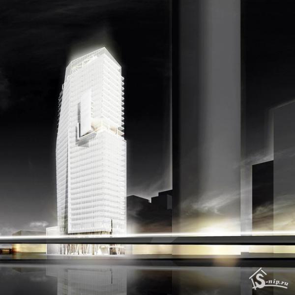 Кроме 34-этажного здания Майера там запланированы корпуса с квартирами и небоскреб с гостиницей и апартаментами. Прозрачная «база» офисной башни будет хорошо видна со всех сторон благодаря своему расположению на окруженной магазинами «плазе». На ее 20-м этаже запланирован зимний сад, а на верхнем ярусе — ресторан и бар.