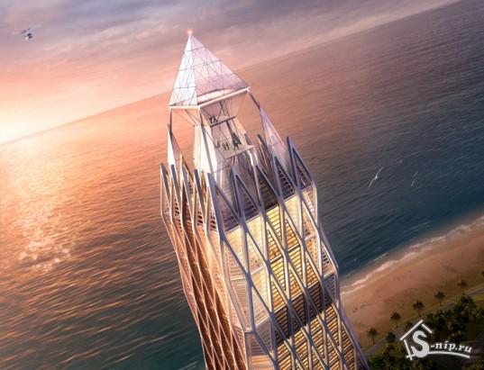 Архитектурная компания Atkins Architecture предложила для клиентов компании Sustainable Growth Investments великолепный проект строительства нового многофункционального многоэтажного комплекса с видом на Черное море, который будет расположен на побережье Грузии. Предположительное месторасположение этого сверкающего на солнце небоскреба под названием Ad Astra – город Батуми.