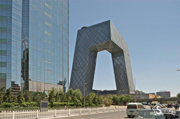 В здании China Central Television (CCTV) размещен весь цикл ТВ-производства – от подготовки до запуска программ в эфир. Серия общественных пространств позволяет гостям телецентра наблюдать за процессом работы. Диагональные профили на фасаде отображают структуру здания: в местах, где несущая конструкция подвергается максимальной нагрузке, они расположены наиболее плотно.
