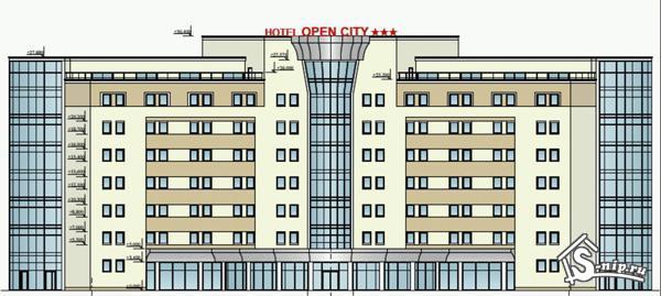 Объект возводится в 11-м микрорайоне на месте бывшего цирка. Трехзвездочный отель будет состоять из 8 этажей, 7 из которых займут гостиничные номера, таковых будет 216, а также конференц-зал и ресторан. Площадь отеля составит 11 тысяч квадратных метров. На территории Open-city будет обустроена гостевая автостоянка.