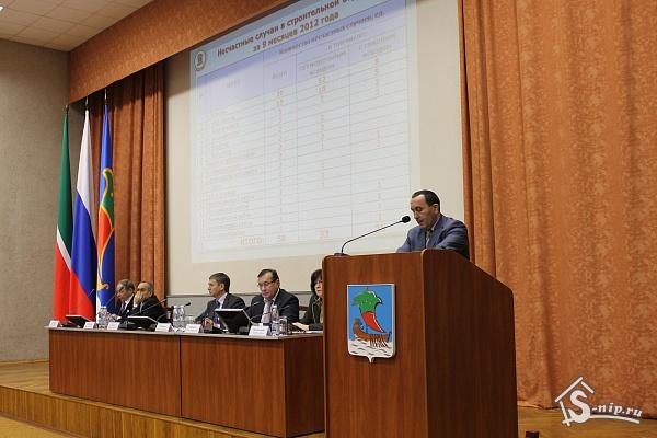 В мэрии города состоялось выездное расширенное заседание рабочей группы Министерства строительства, архитектуры и жилищно-коммунального хозяйства РТ по вопросам охраны труда и техники безопасности в строительной отрасли с участием начальника управления МСА и ЖКХ РТ Ильшата Гимаева.