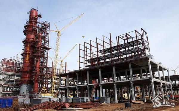 Уже поднята дымовая труба высотой 145 метров, стоят технологические печи. Следующая задача — прокладка подземных инженерных сетей общей протяженностью 80 километров. Их нужно уложить до «большой грязи», чтобы сверху обустраивать площадку и нормально работать осенью, зимой и весной. Параллельно усиленными темпами идут работы по проектированию, поставкам и монтажу оборудования для других установок. Одновременно создаются объекты общезаводского хозяйства с учетом перспективы дальнейшего развития комплекса.