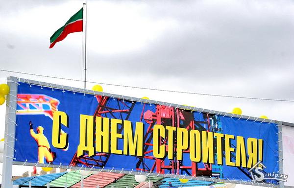 Праздник начался в 11.00. Челнинцы стоя приветствовали ветеранов стройки города, знаменитых бригадиров, строителей: Героев Социалистического Труда Василя Мавликова и Виктора Филимонова, Почетных жителей города Георга Геворгяна, Константина Альчикова. Их руками построены сотни домов города, социально-бытовые объекты, производственные корпуса КАМАЗа и других предприятий, агропромышленная зона автограда, даже объекты Олимпиады-80. После «аксакалов» стройки парадом прошлись предприятия строительной отрасли Набережных Челнов. Возглавил шествие прославленный коллектив строителей – ОАО «Камгэсэнергострой». Впервые в этом году в параде участвовала группа компаний «Энергогазкомплект», которая в последние годы все увереннее заявляет о себе на рынке строительных услуг. Руководитель исполнительного комитета Василь Шайхразиев, выступая перед собравшимися на стадионе челнинцами, в первую очередь, обратился со словами благодарности к ветеранам строительства автограда и автогиганта. Он отметил, что «благодаря их трудовому подвигу Набережные Челны, отмечающие на днях 80-летие, радуют взор красивыми домами, широкими проспектами. И сегодня в Набережных Челнах кипит стройка: возводятся дома и детские сады, реконструируется БСМП. Город уверенно идет в свое будущее». Начальник управления Министерства ЖКХ, архитектуры и строительства Юрий Аляшев передал строителям поздравления руководства республики. Он заметил, что Набережные Челны являются лидером строительно-монтажных работ республики.