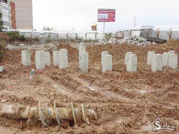 Генподрядчик объекта - СМТ для победы над известняковым пластом привлек спецтехнику – специальную бурильную установку. Под каждую сваю на этапе подготовки фундамента сверлили, так называемое «лидерное отверствие», и только потом забивали.