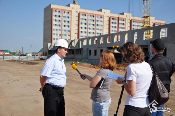 Чтобы не отстать от графика бригады работают в круглосуточном режиме. Каких-то оригинальных проектных решений здесь не предусмотрено - типовые многоквартирные дома. Правда, теперь в каждом подъезде будут установлены резиновые пандусы для малоподвижных групп населения.