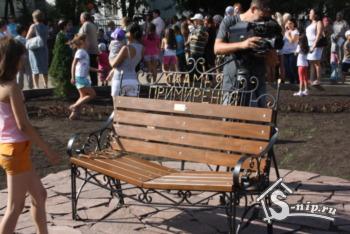 Отдельной достопримечательностью сквера стала скамейка примирения. Такой своеобразный памятник впервые появился в Москве на Болотной площади. Позднее эстафету перехватили Ижевск, Калуга и еще ряд российских городов. Принцип примирения оказался максимально прост: скамья скошена с двух сторон к центру, так что сидящие по краям люди непременно окажутся рядышком.