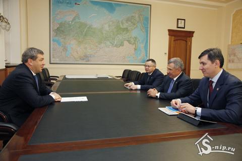 Глава Минрегиона России Игорь Слюняев встретился с Президентом Республики Татарстан Рустамом Миннихановым. Во встрече также приняли участие Министр строительства, архитектуры и ЖКХ Республики Татарстан Ирек Файзуллин и Министр информации и связи Республики Татарстан Роман Шайхутдинов.