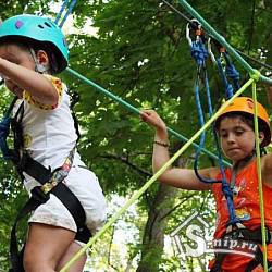 Веревочный парк предназначен для детей от четырех лет. Родители могут быть спокойны: на каждого ребенка будет одеваться специальное альпинистское страховочное снаряжение. Отстегнуться от страховки он сможет только тогда, когда дойдет до финиша. Детишки смогут пройти три вида полосы испытаний, направленных на преодоление страха высоты, воспитание чувства уверенности в себе и умение не сдаваться перед трудностями.
