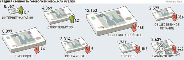 Самые любопытные изменения произошли в стоимости готового бизнеса. Сильнее всего цены упали в сегменте "общественное питание" - на 35,6 процента. Зато строительный бизнес подорожал сразу на 147 процентов. Стоимость готового строительного бизнеса в Ростове-на-Дону выросла в 7 раз, в Санкт-Петербурге - в 5,5 раза, в Омске - в 4 раза. Средняя цена на него 4,37 миллиона рублей против 1,77 миллиона годом ранее. "Рост спроса на стройбизнес можно объяснить тем, что девелоперы, которые остались на плаву после снижения цен на рынке недвижимости, поглощают более мелких игроков, которые разоряются", - уверен эксперт.